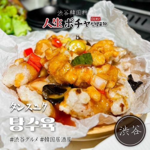 * 맛과 감칠맛을 추구한 한국 음식 * 밖은 바삭, 안은 육즙에 튀긴 한국식 식초 돼지 "탕수육".새콤달콤한 특제 소스를 얽히고 먹으면 깔끔한 맛으로 먹고 질리지 않습니다.술의 안주에도 식사의 메인도 되는 만능 메뉴로, 폭넓은 층에 인기입니다.